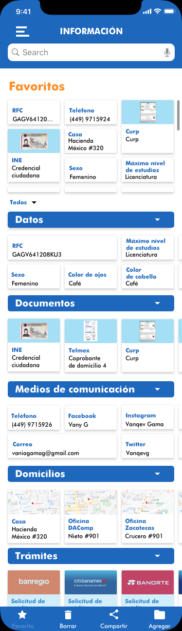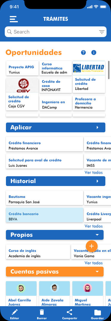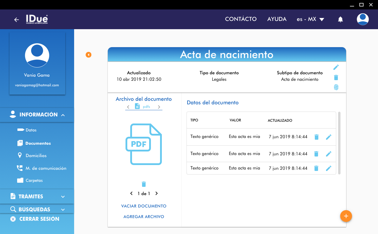 Metadatos y texto de proyectos, colecciones, versiones, archivos, comentarios y respuestas