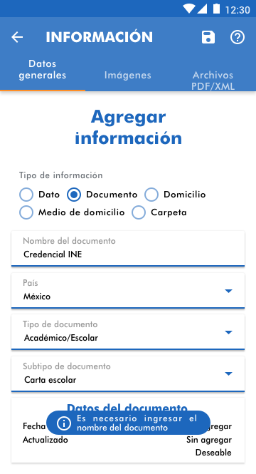 A continuación, se enumeran todos los posibles formatos que puede contener tu archivo: